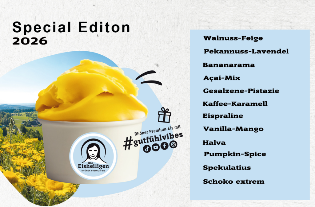 Freut euch auf ganz besondere Eissorten – aber immer nur für kurze Zeit und nur bei eurem Eisdealer des Vertrauens. Habt ihr Ideen, welche Sorten wir mal machen sollen? Dann schickt sie uns gerne an crew@eisheiligen.de